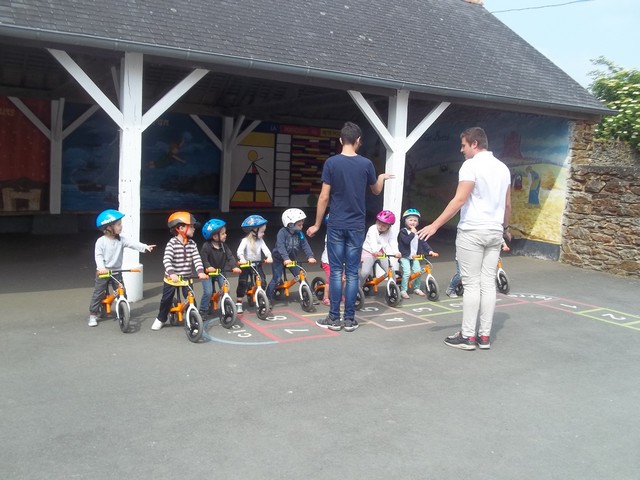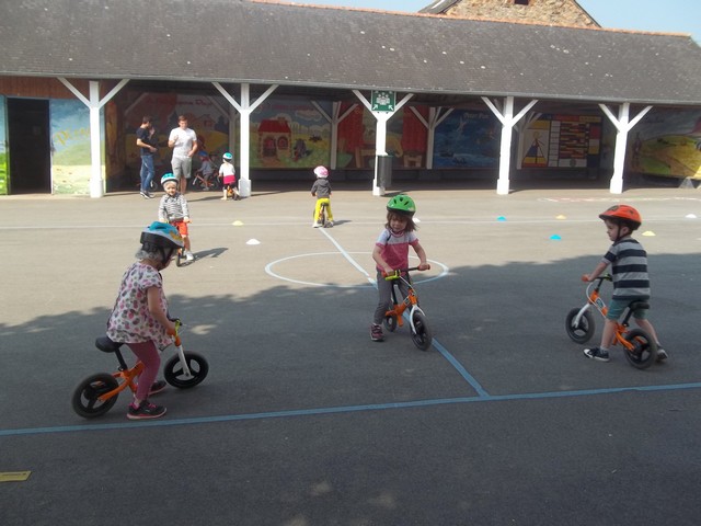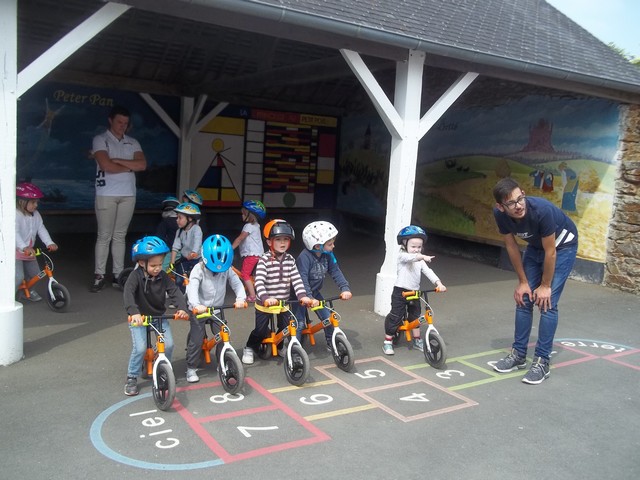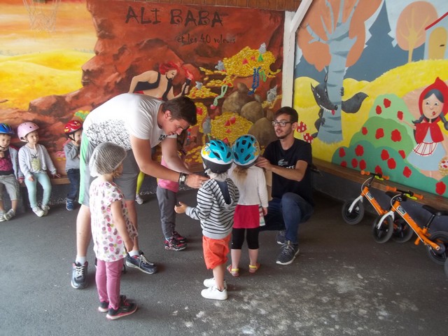 Jeudi 24 et vendredi 25 mai, nous avons profité d’un atelier draisienne proposé par le conseil général, avec Clément et Damien, en service civique. Une draisienne c’est un vélo sans pédale pour apprendre à maîtriser son équilibre.