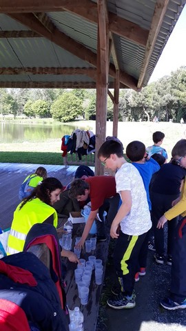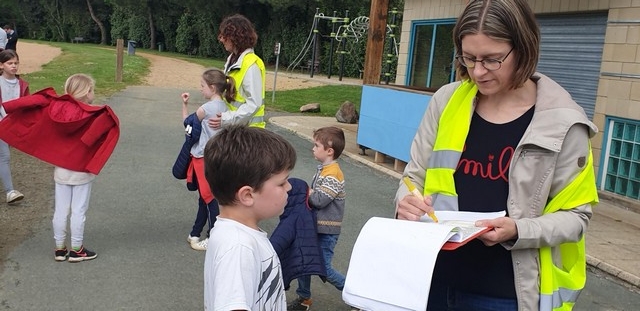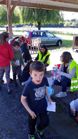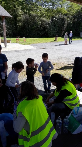 En amont, avec l’aide de leur famille, les enfants étaient partis à la recherche de « parrains » pour sponsoriser leur marche. Forts de cette promesse de dons, ils ont donné le meilleur d’eux mêmes le jour J, cumulant un nombre impressionnant d’ étapes (1 tour d’étang correspond à 2 étapes et nous avons également comptabilisé 2 étapes pour le chemin école-étang). Chaque enfant était muni d’une carte de pointage pour faire valider chaque étape franchie. Aron était présent pour soutenir les enfants, avec ses parents et les membres de l’association.
