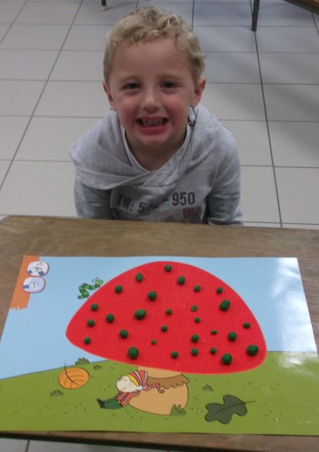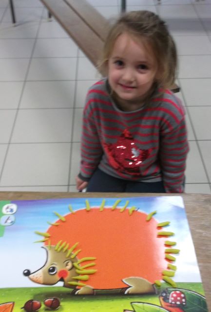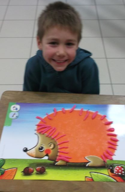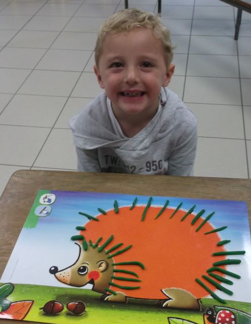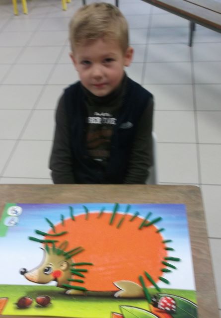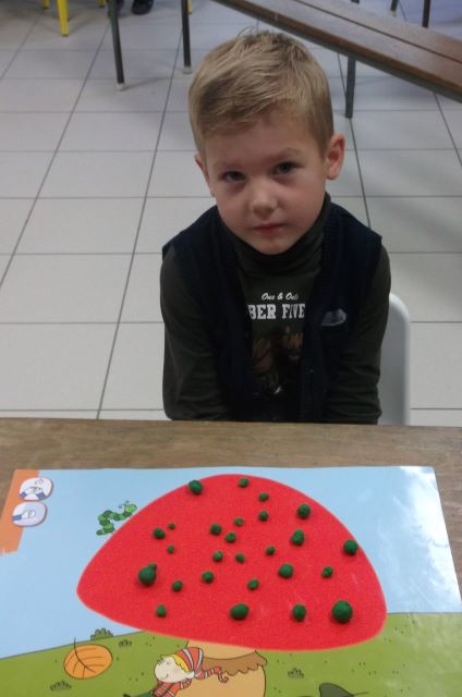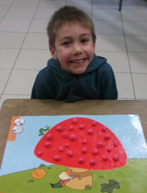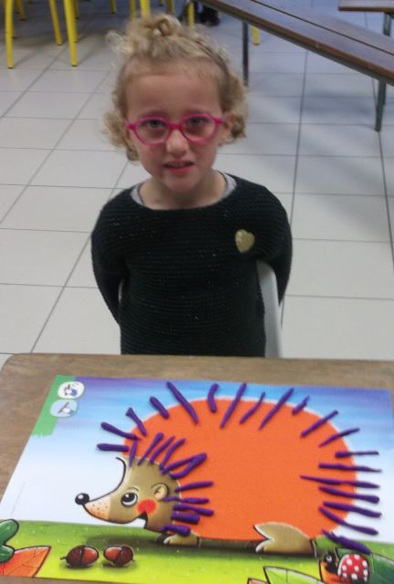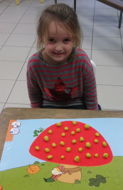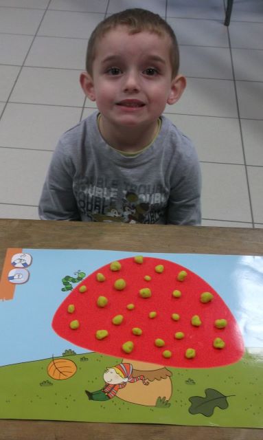 Les MS avaient à faire des colombins pour faire les piquants du hérisson et des boules pour décorer le champignon.