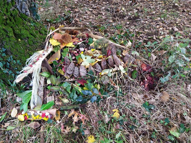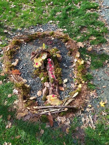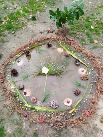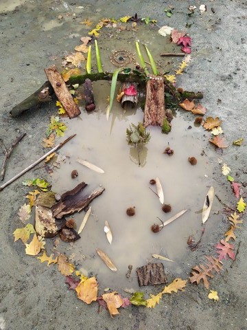 En octobre les élèves de CE et CM sont allés à l’étang de Buhel pour s’exercer au Land art. Ils ont apportés des éléments de nature de chez eux et en ont également pris sur place, mais avec pour consigne de ramasser ce qui était au sol, pas arracher!