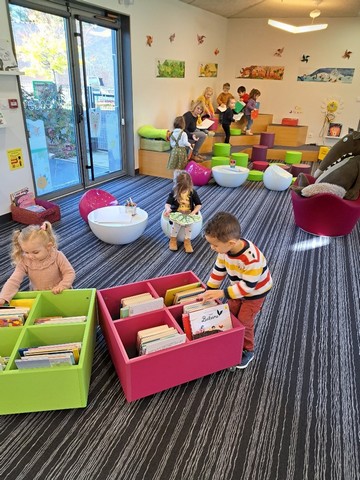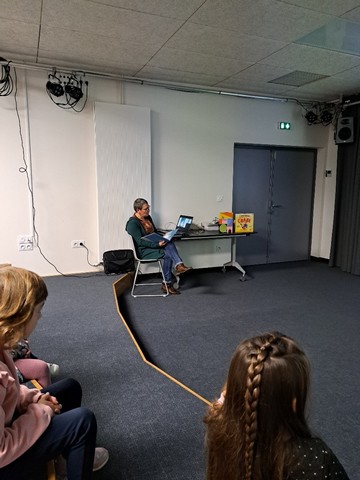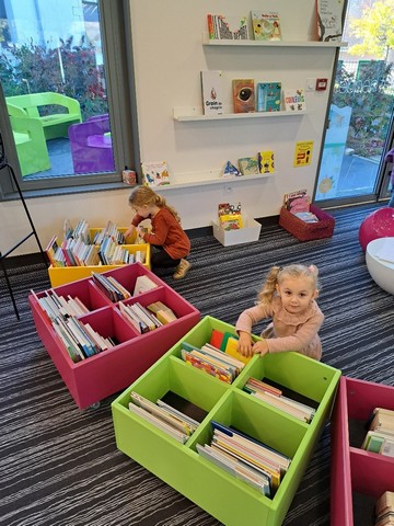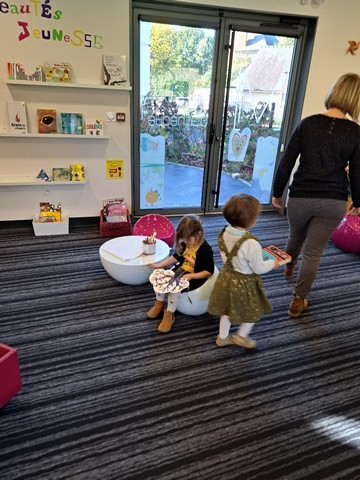 Jeudi 10 novembre, nous sommes allés à la médiathèque. C’est Christelle qui nous a accueillis. Dans un premier temps, elle a fait des activités avec les MS pendant que les PS s’installaient dans le coin lecture puis après 20mn nous avons échangé.